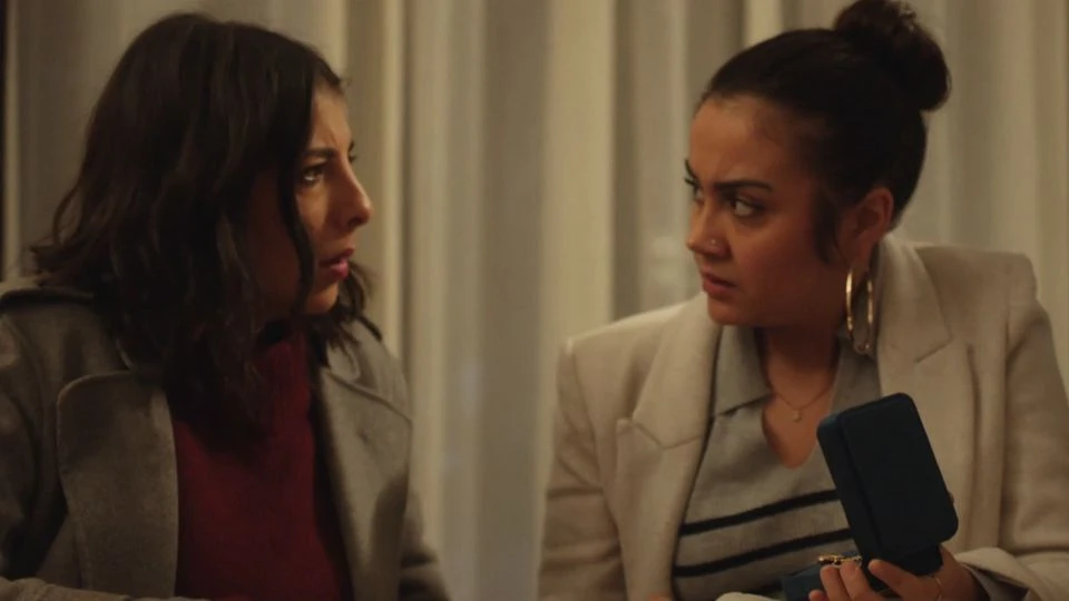 Les soeurs sont de retour. Elles foncent sur un vieil album et retrouvent la photo qu’elles cherchaient. Leur mère Leïla (Samira Lachhab) y porte un collier. Le même que celui qui leur a été livré. “C’est le collier de maman !” s’exclame Noor.