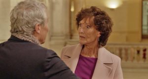 Alors que Claudine (Catherine Wilkening) se délecte des malheurs de Johanna, les potins vont bon train parmi les journalistes.